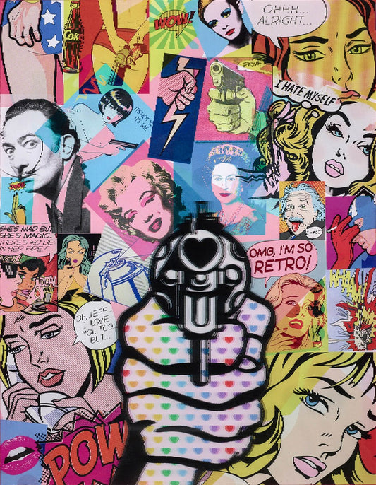 Dan is a contemporary mixed media artist, his works take inspiration from street and pop art and juxtaposing it with fine art, his work is bold and confident in style often completely transforming iconic portraits with his own inimitable style and blurring lines between new media, pop and digital art.