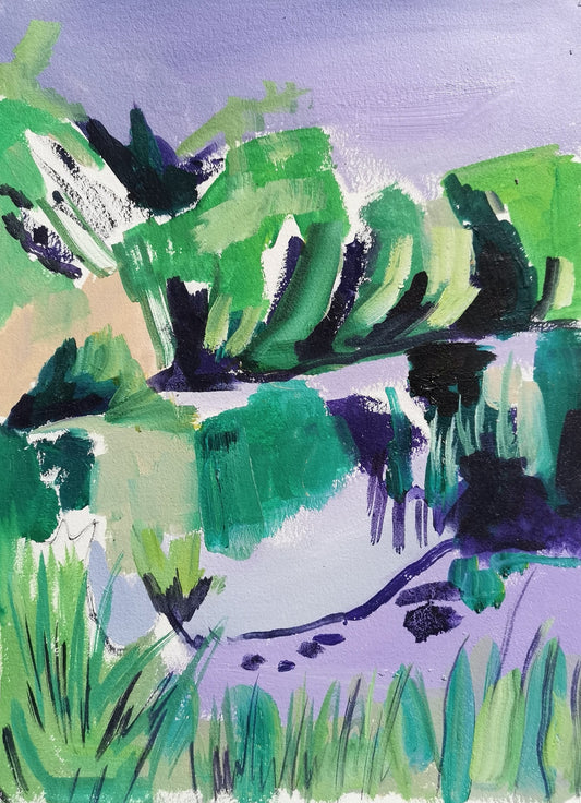 Lucy Smallbone is a graduate from the Slade School of Fine Art Master's program who specialises in modern landscape painting. Her work looks at the merging of fictional and real space, and how stories and our memories can affect and alter our view of a place. Picture plains tilt upwards and vivid colours grow across the surface consuming it, leaving the landscapes uncertain of whether they are forming or falling apart. This feeling of never truly having access to the landscape is meant to reflect something that is felt in moments of the sublime in nature. Smallbone is a recipient of such prizes as the Haworth trust grant (2011), the David Balladie travel prize (2009) and travelled to Chernobyl thanks to the Duveen Travel Prize (2016).
